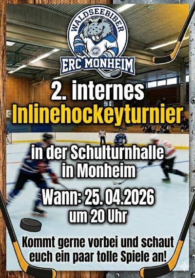 Packt die Skates ein und ölt die Rollen: Der ERC Monheim lädt zum großen Budenzauber in der Schulturnhalle ein! Nach dem Erfolg der ersten Ausgabe geht unser internes Inlinehockeyturnier am 25. April 2026 in die zweite Runde.